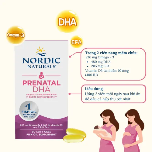 Viên uống DHA Nordic 90 viên cho mẹ bầu & sau sinh – Hiệp Hội Thai Sản Hoa Kỳ Chứng Nhận